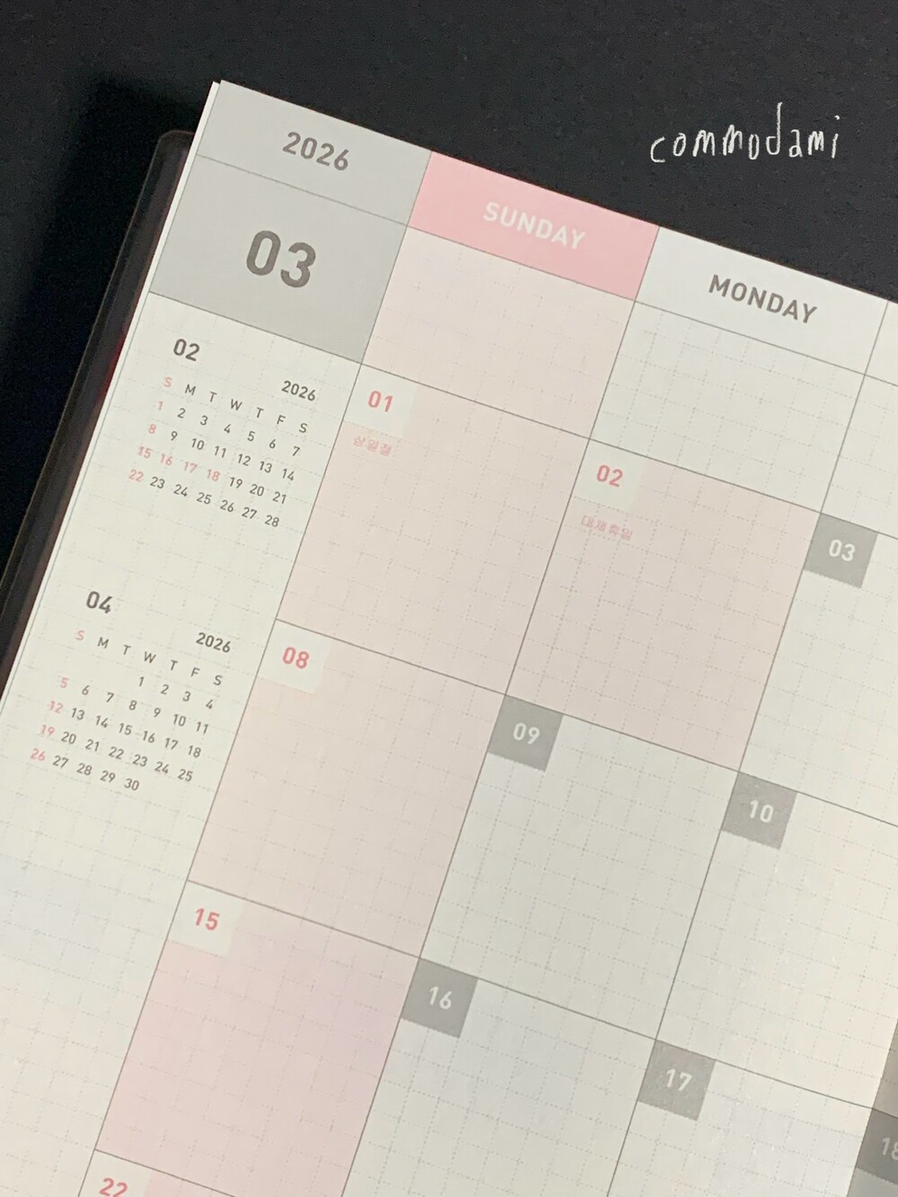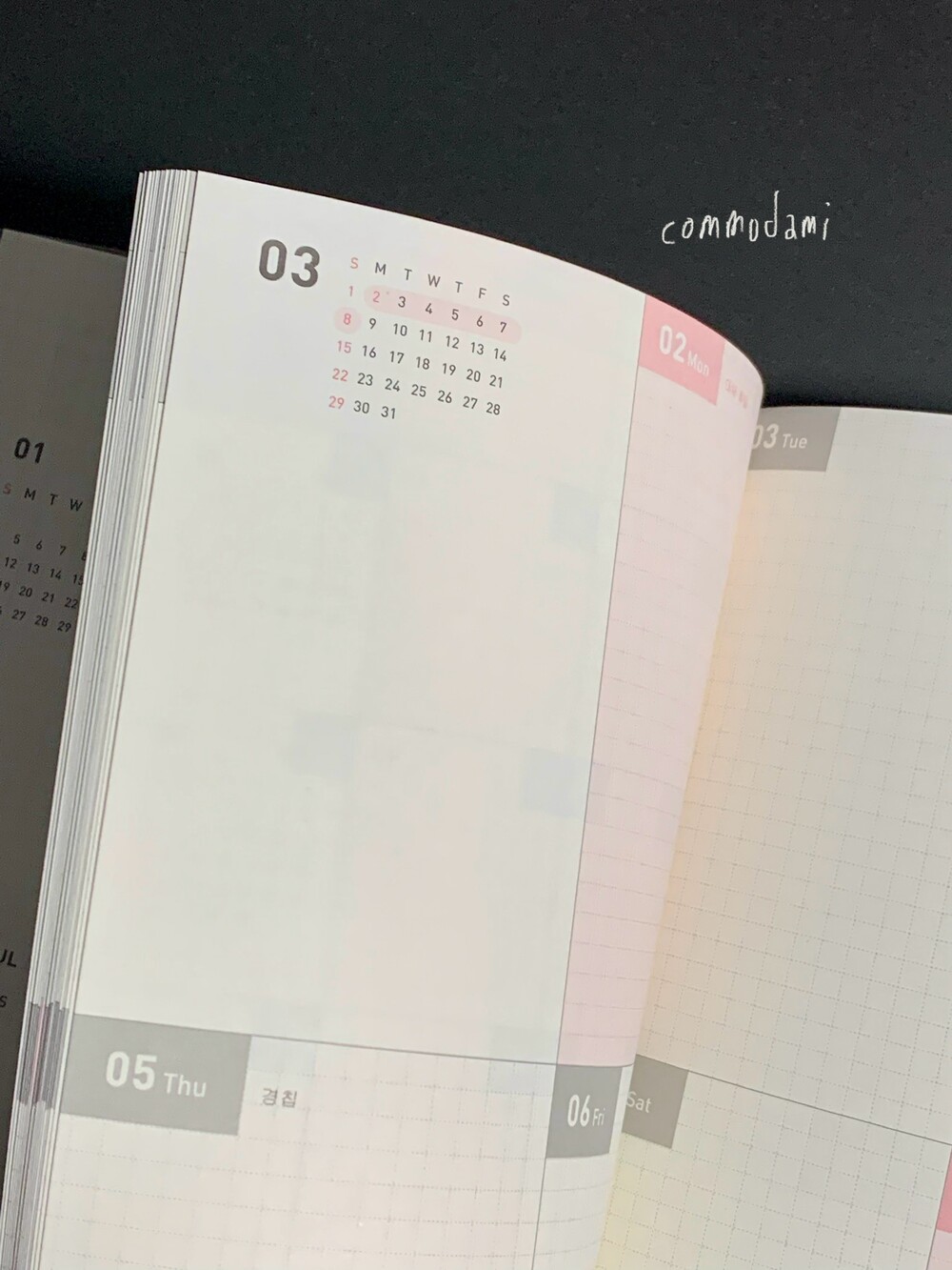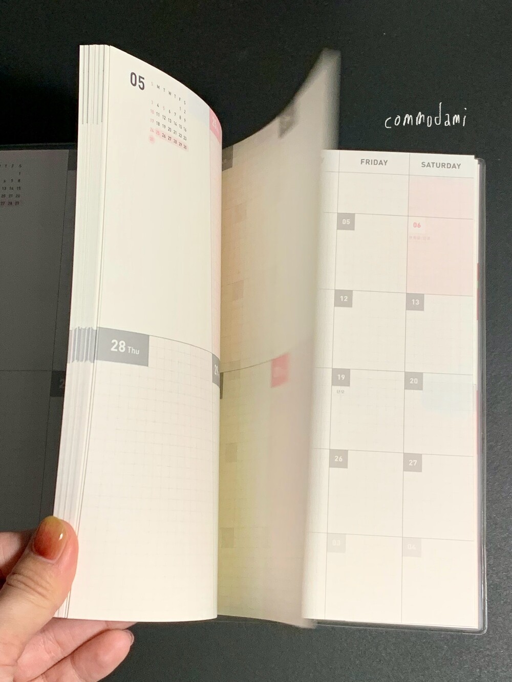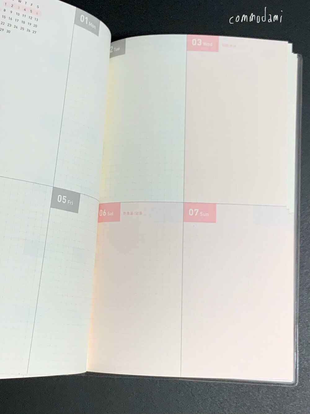 월간과 주간이 반복되는 구성의 날짜 확장형 다이어리입니다