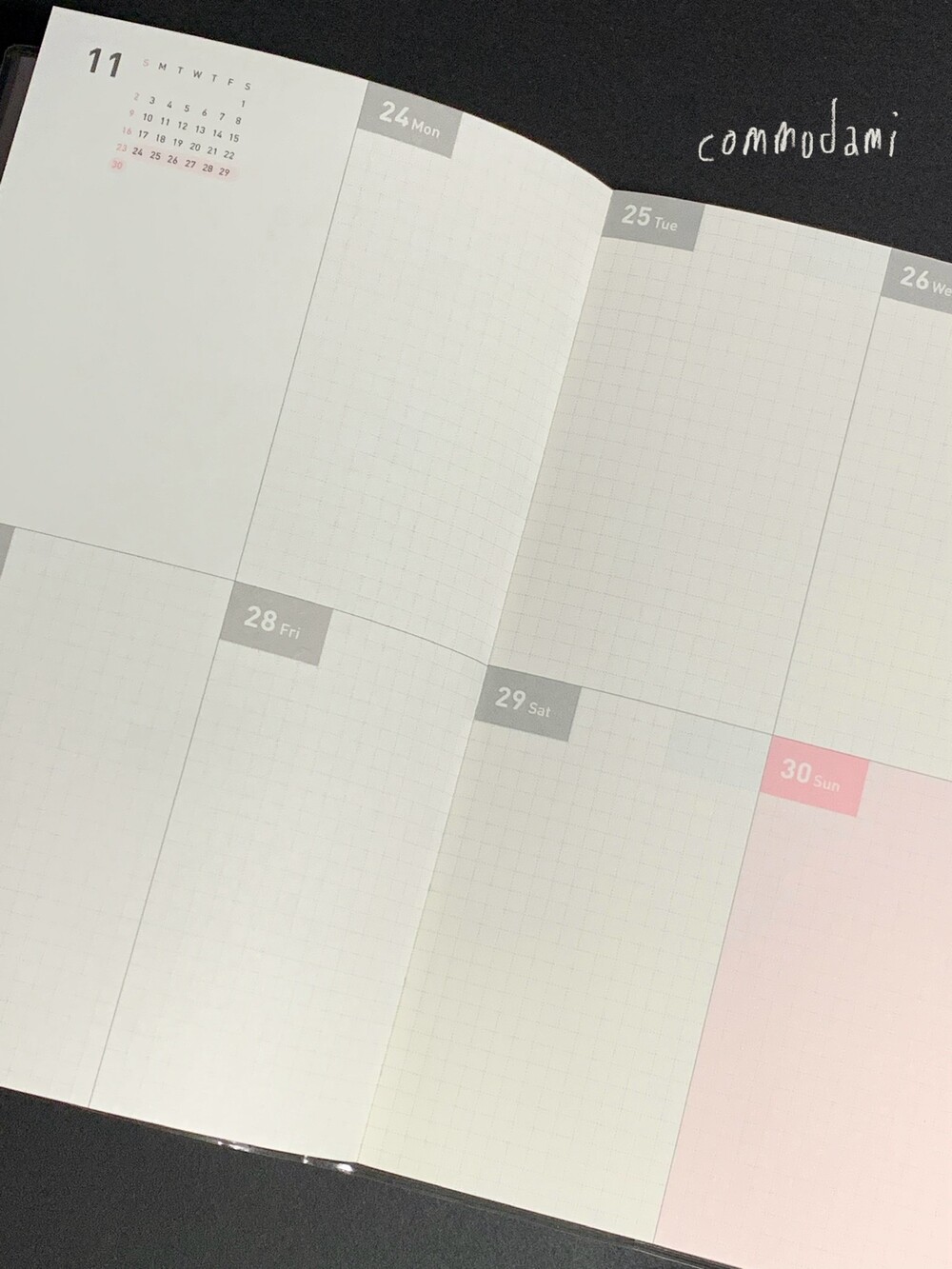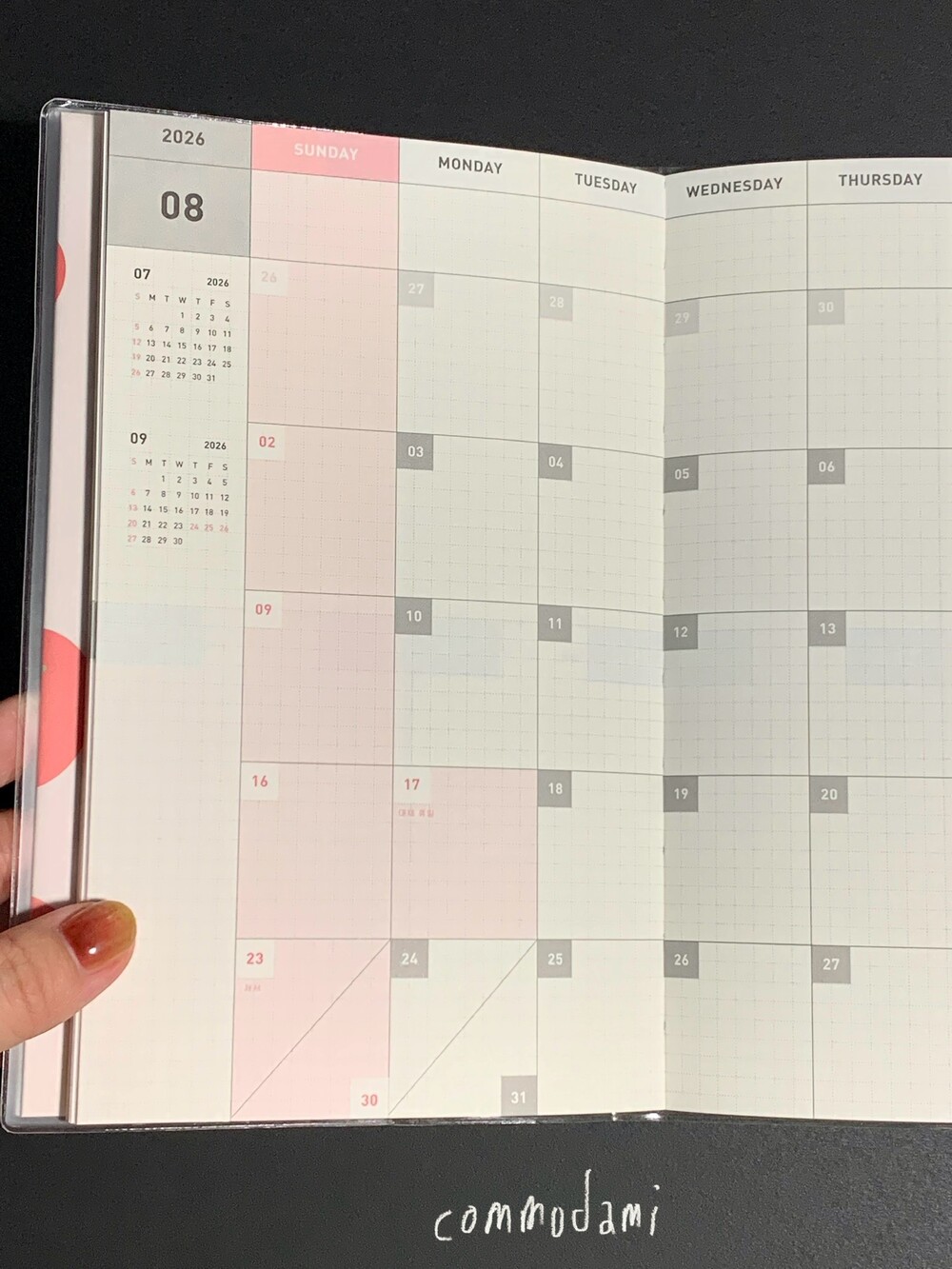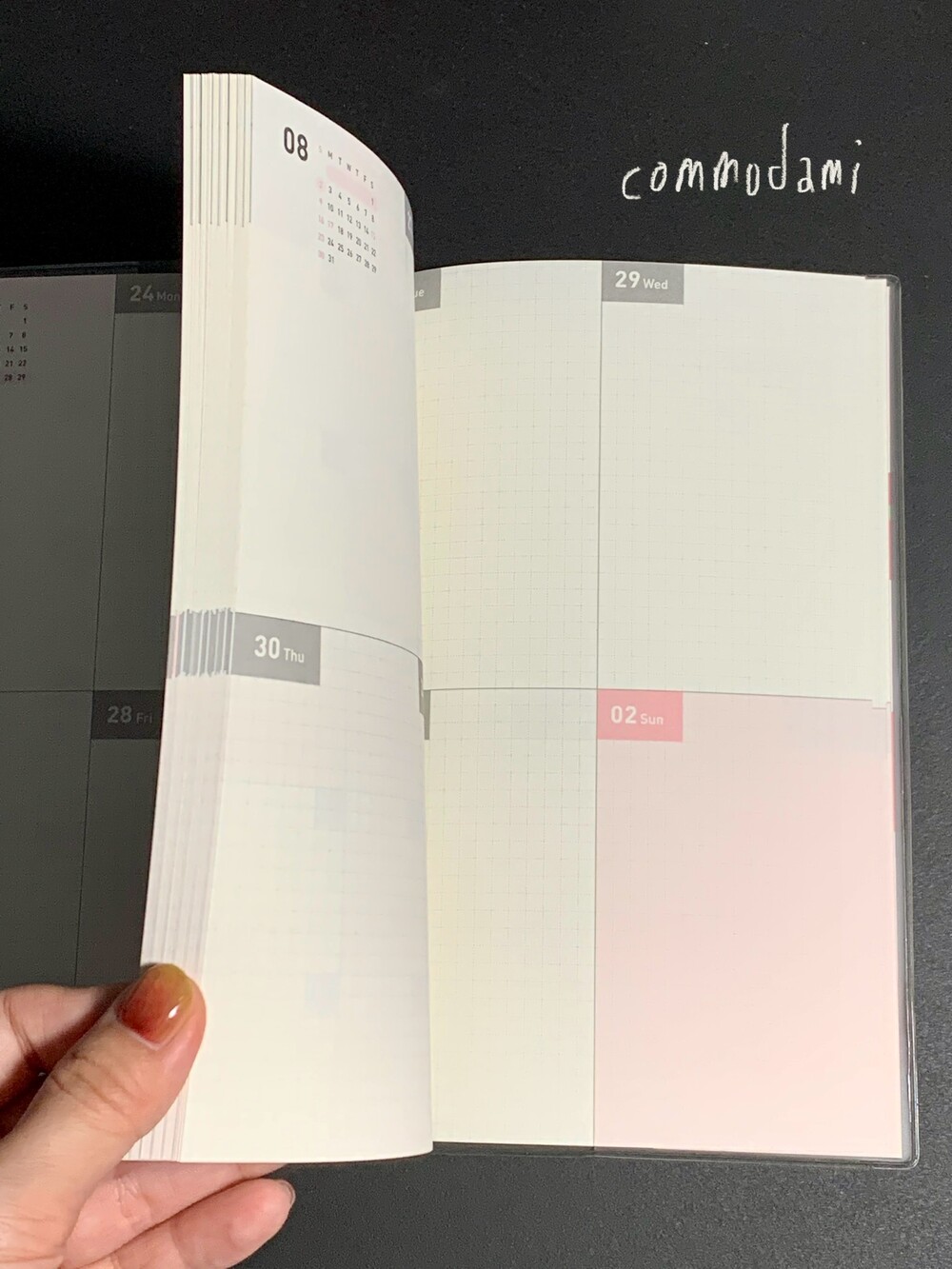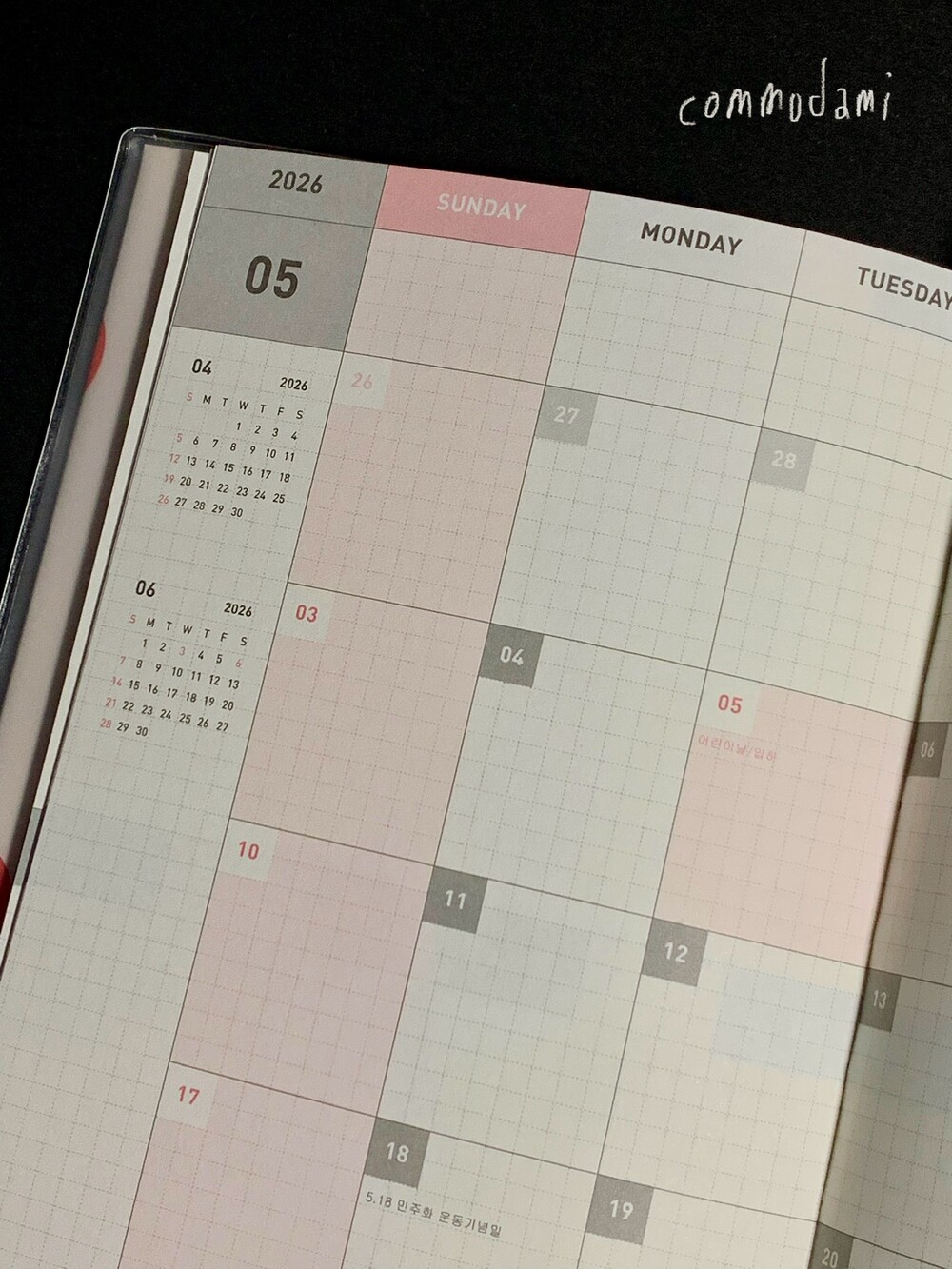 월간과 주간이 반복되는 구성의 날짜 확장형 다이어리입니다