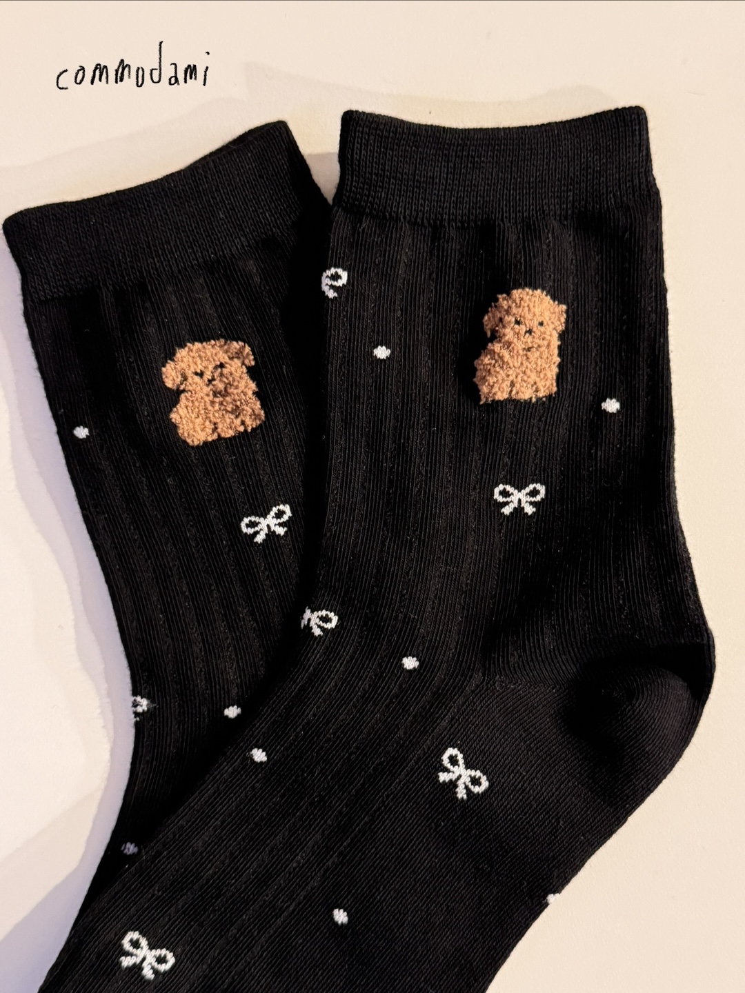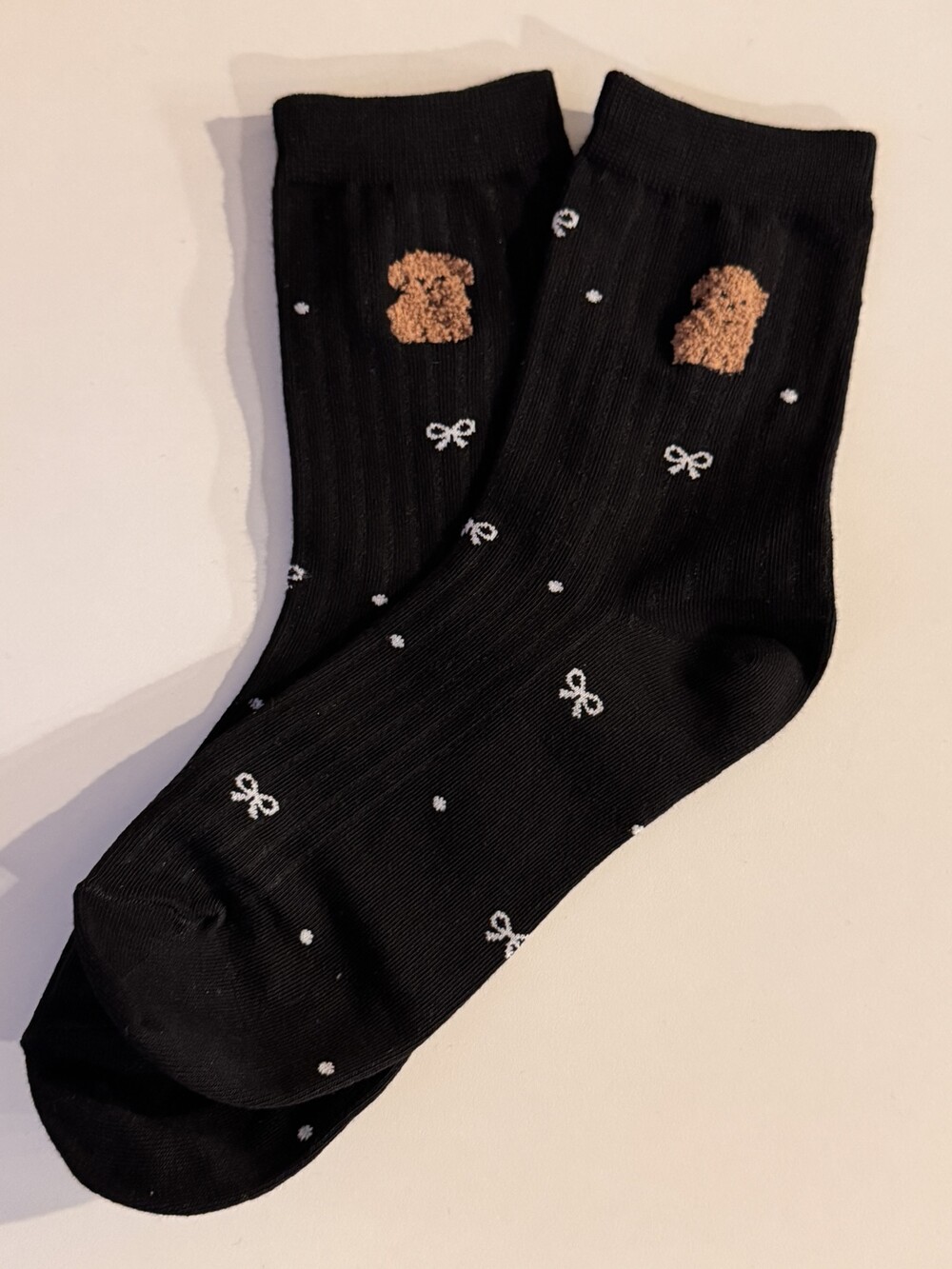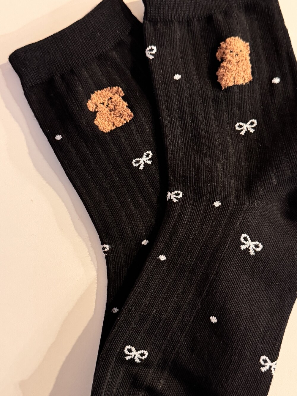 갈색푸들&리본 양말