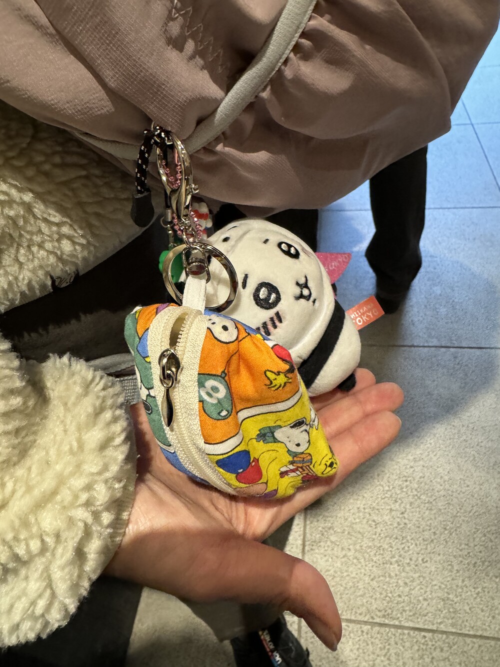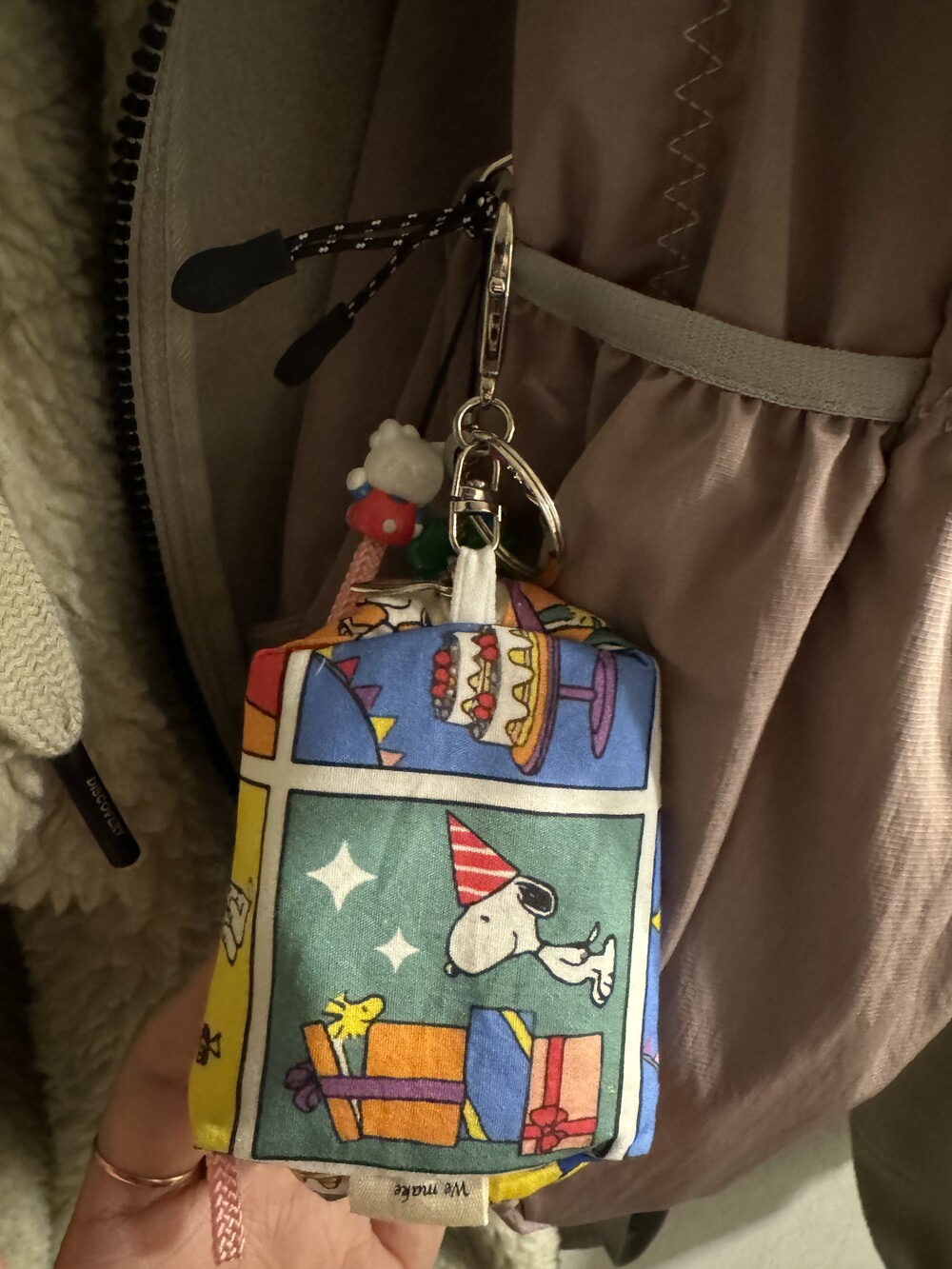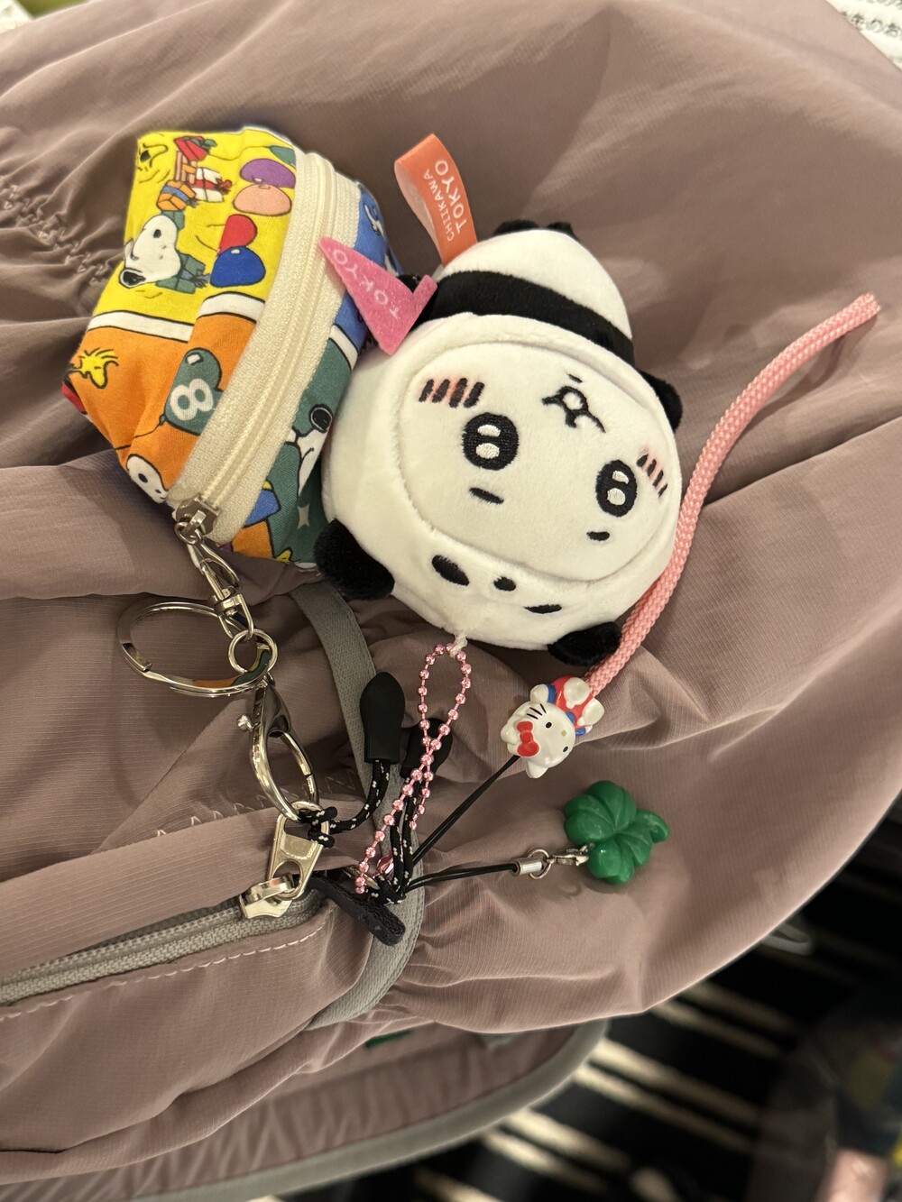 백팩에 매달아준 모습 !